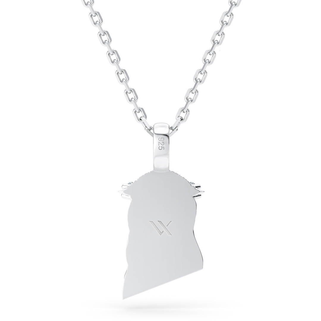 The iconic Jesus Piece, detailed in hand-set diamonds just on the crown of thorns, eyes, and bail. Intricate hair accents complement the stone work, making this one of the most detailed Jesus pieces. Buy alone or bundle with an Italian sterling silver chain to save $50.